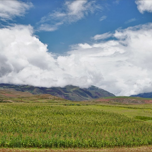 We started our second day early as we wanted to do a bigger day trip to the spectacular Inca ruins of Moray, the little sleepy agricultural village of Maras, and the natural salt mine, the Salineras, which produces the well-known Maras salt of the area, which are all within hiking distance from each other. We had to take a collectivo from Ollanta to a crossroad which leads to these villages, and then we shared a taxi with about 5 more people to the village. It’s an art how drivers try to maximize the revenue they can make from a ride, they don’t know any capacity limit of their car, and the rest is up to the passengers to sort out. When you think the car/bus is full, in fact double that amount of people can still fit somehow… Due to the heavy rain in the morning in the end we had to take a taxi to the Moray Inca ruins (which was the result of a roughly 15-minute negotiation on the price with the guy who decided to become a taxi driver for us) and only walked from Maras to the Salineras, and from there to the main road back to Ollanta (altogether about 1.5-2 hours). The path took us through a picturesque scenery of corn fields on the foot of mountain ranges with fortunately some patches of sunshine.